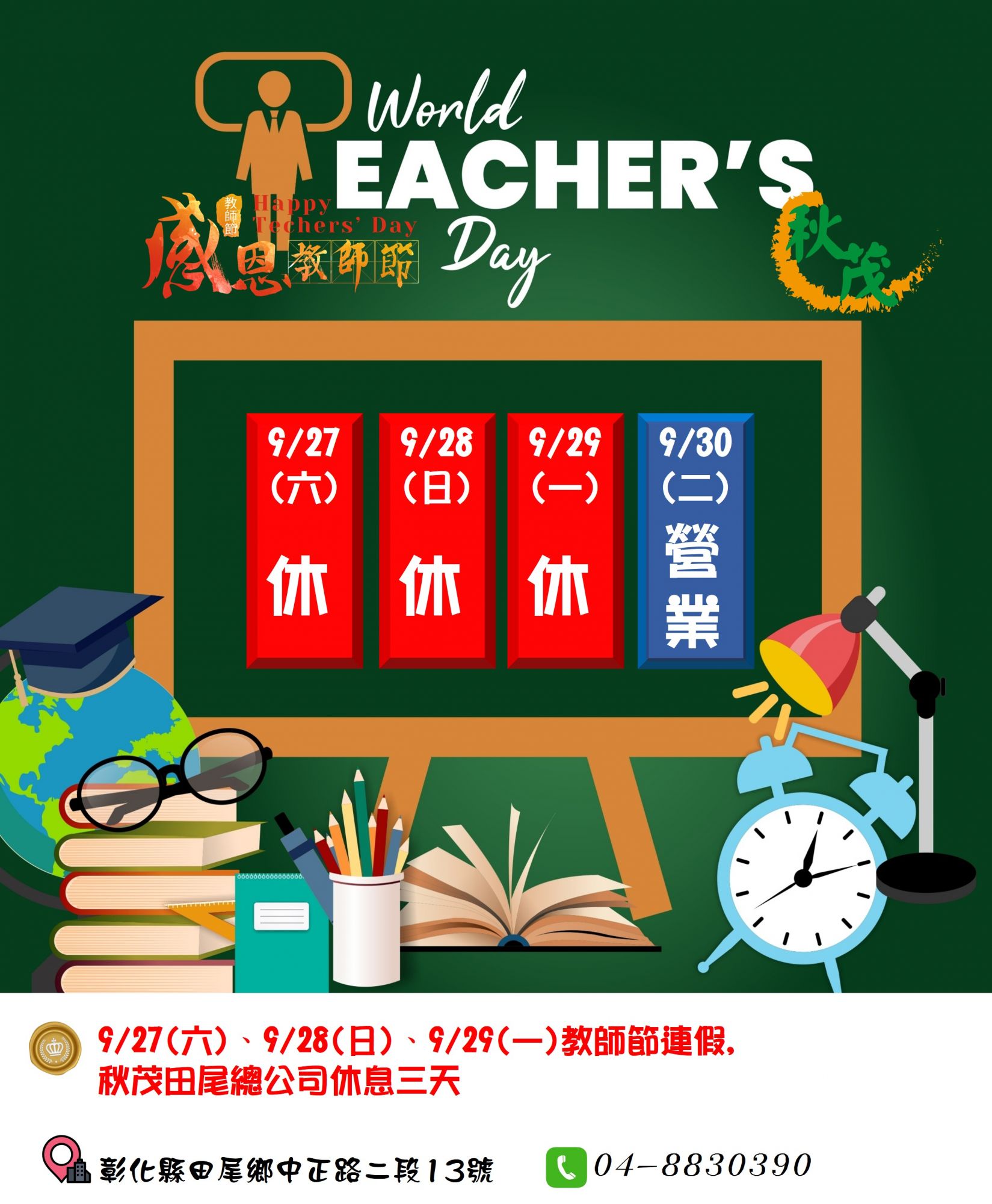 2025/9/27(六)~9/29(一)教師節連假秋茂田尾總公司休息3天