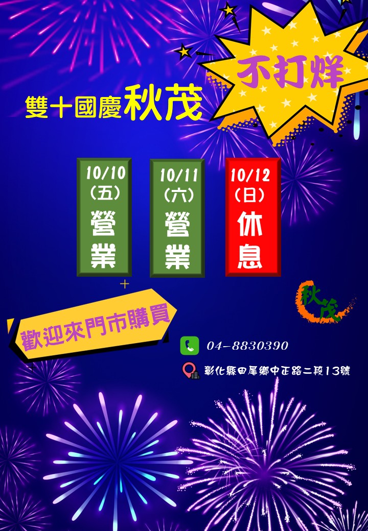 2025雙十國慶秋茂田尾總公司不打烊