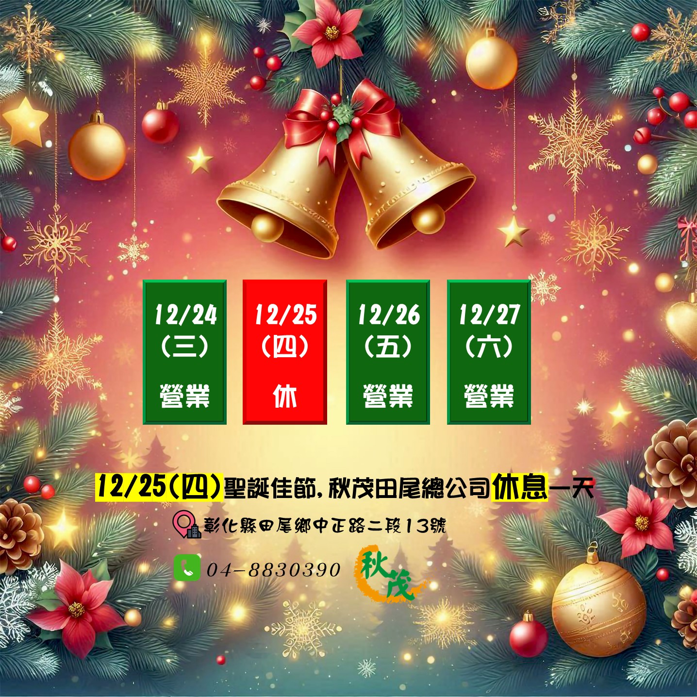2025/12/25(四)適逢聖誕佳節!秋茂田尾總公司休息1天