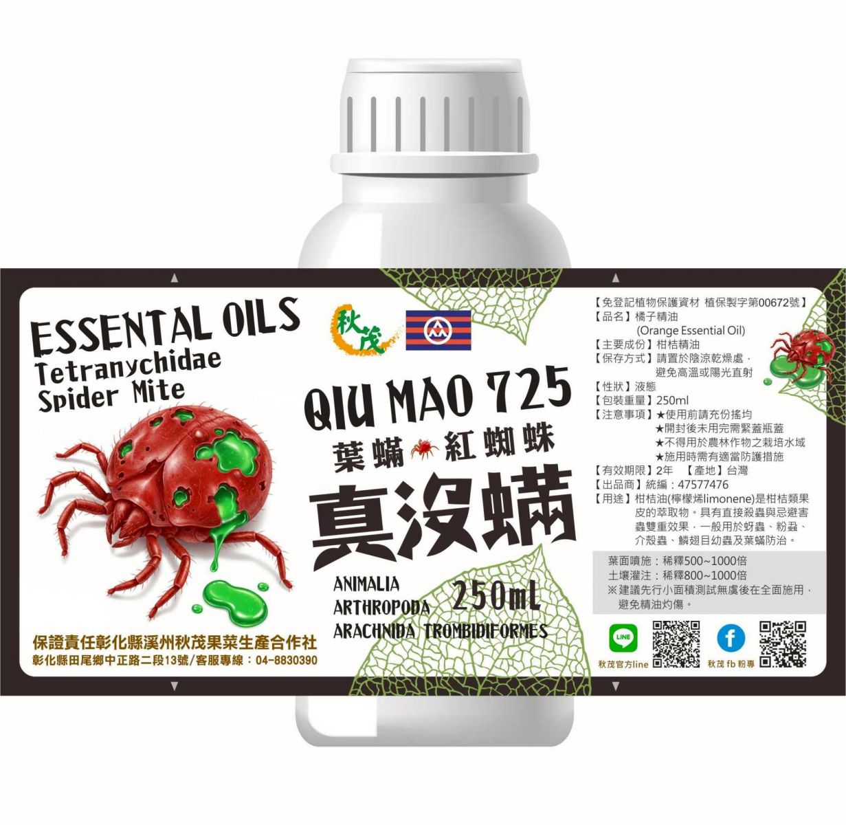 推薦用法:725真沒蟎#1000倍+261好藥引(滲透型展著劑)#3000倍,葉噴(3~5天一次)