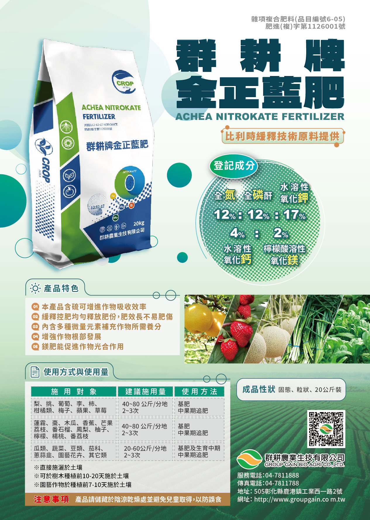 【化學肥料】藍肥【12-12-17+鈣4%+鎂2%】快速澎果鉀肥_群耕牌金正藍肥_20kg -秋茂合作社-秋茂生物科技-肥料批發-肥料行-彰化肥料行