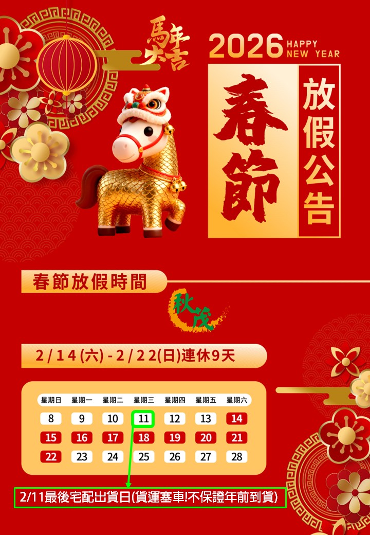 新年放假9天!!需要資材的朋友們可以線上訂購唷!!