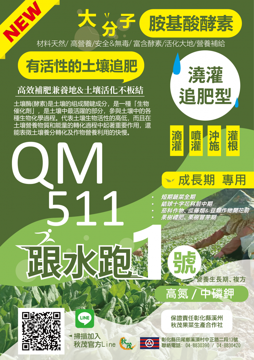 一、秋茂511跟水跑 (生長期 專用 | 高氮 中磷鉀)