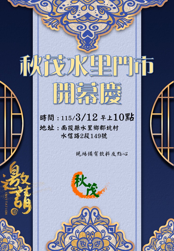 秋茂南投水里門市在115/3/12(四)開幕囉!!