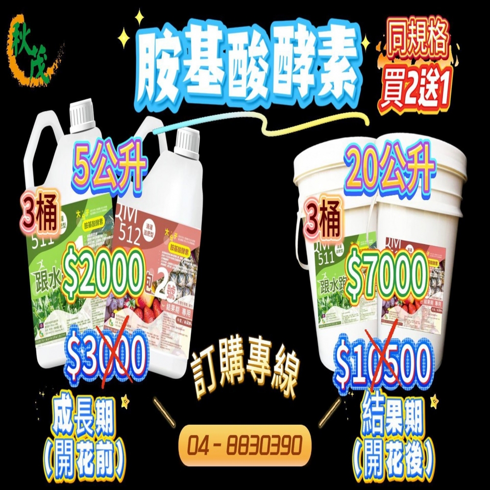 【新聞快報】別敲碗了!!大師這不就來了嗎!! 秋茂一行大師報好康!!胺基酸酵素跟水跑做特價囉!! 兩種規格(5公升/20公升)任你挑!!
