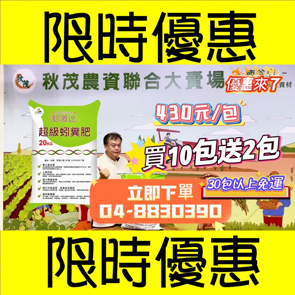 【新聞快報】【限時優惠0723-0725】不一樣的蚯蚓肥_超級蚓糞肥_20kg_粉狀 買10包送2包大優惠