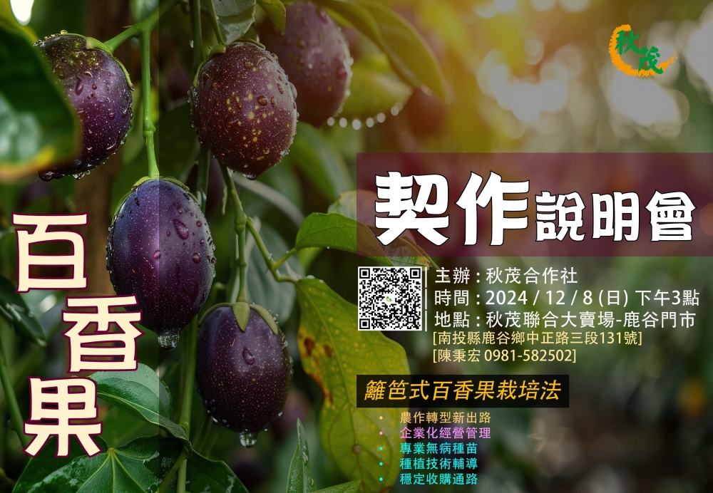 【新聞快報】是不是在想種什麼才賺錢呢? 是不是有在想要轉作呢? 是不是害怕沒技術沒通路呢? 秋茂整合有百香果種苗,籬笆式種植技術,穩定收購通路,會是農作轉型的新出路, 秋茂歡迎你
