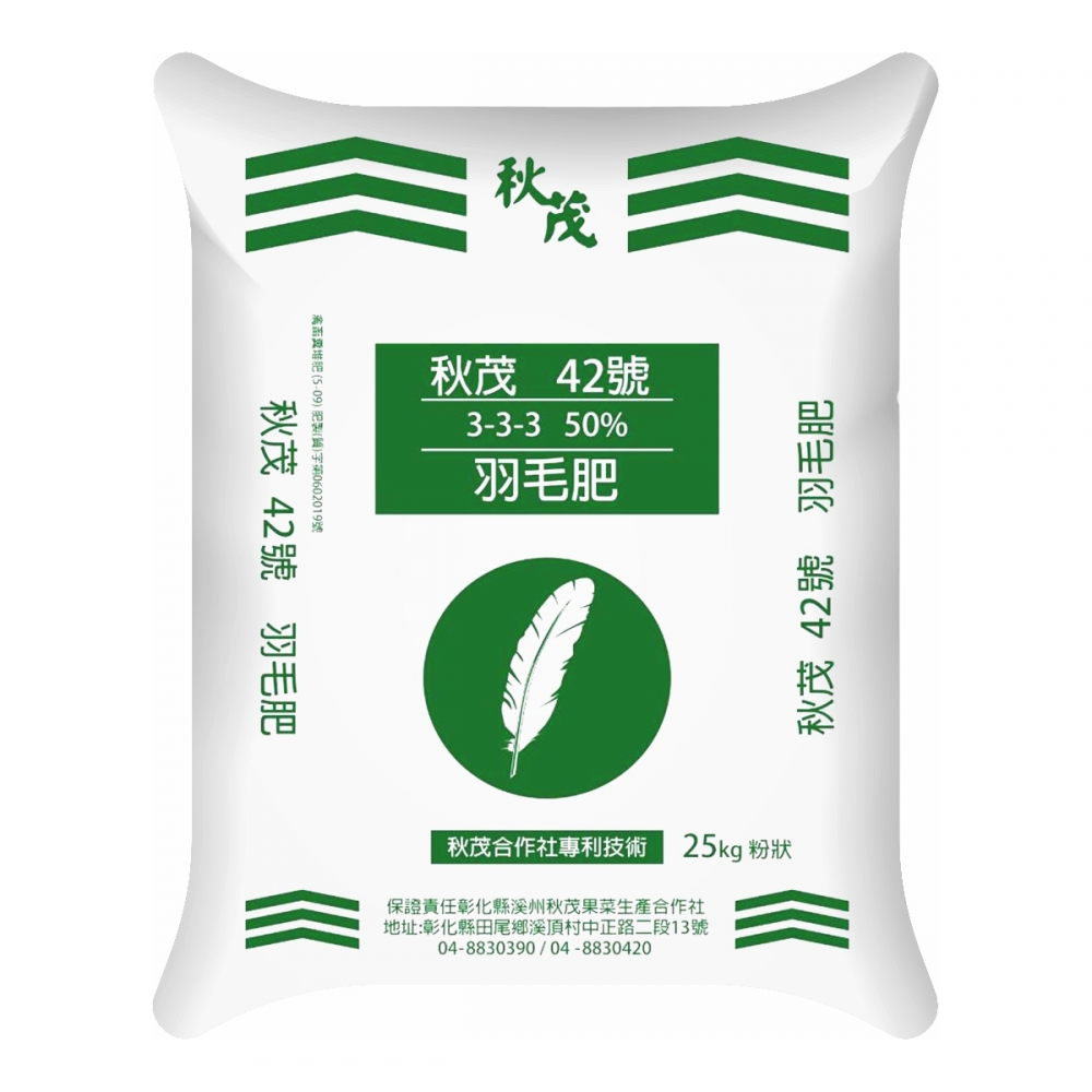 【資材研發】「增加肥力專用」「氮」元素型「成長肥」,特殊添加:生羽毛/羽毛胺基酸/地衣芽孢桿菌、哈茨木黴菌<3-3-3 50% | (5-09)肥(質)字第0602019號>