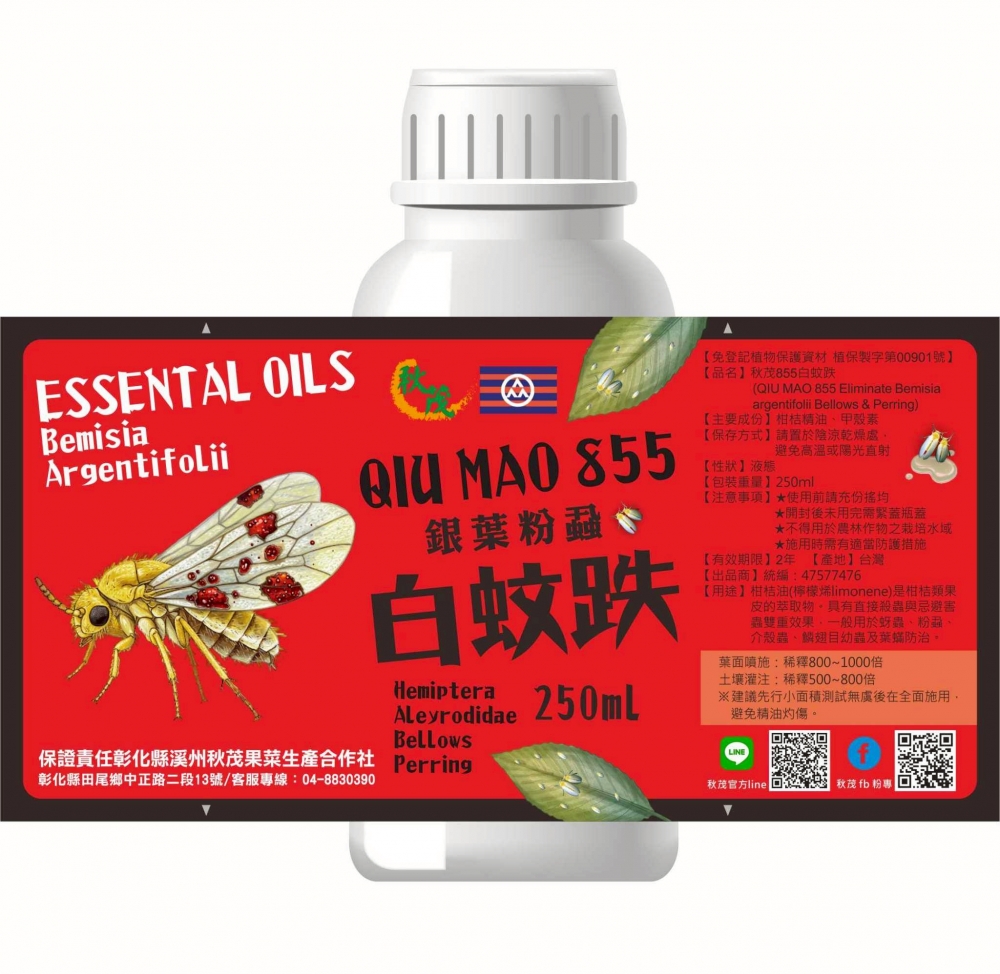 【資材研發】以「破壞翅膀」為主要作用機制,主要針對「銀葉粉蝨」防治及有翅膀的葉蟬,飛動的蝶類、蛾類、潛葉蠅,蟲卵等防治<植保製字第00901號>