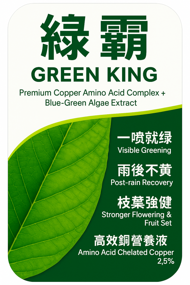 【資材研發】補充微量元素「銅」,維持葉綠素穩定性,一噴馬上吊青,強化植物酵素合成,提高植物體內的「防禦與修復系統」不易受外來微生物干擾發育