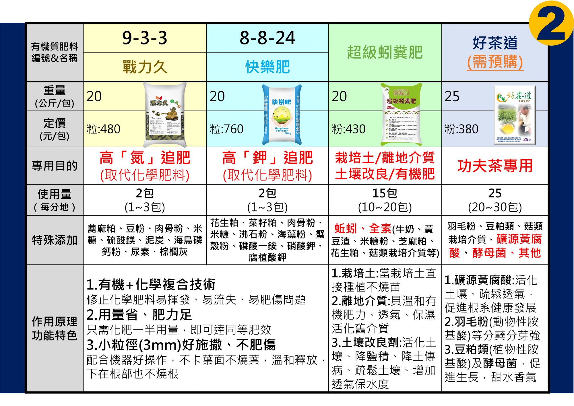 | 有機+化學複合技術:合成為高肥力的有機肥,用量少肥力足,省工好施作。